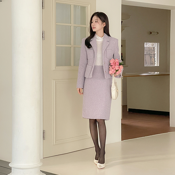 Merry ブークレ ツイード キルティング Set-up ジャケット