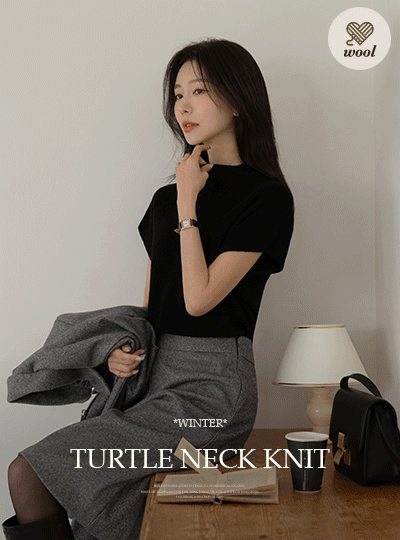 ウール100% ドルマンスリーブ 半タートルネック ニット