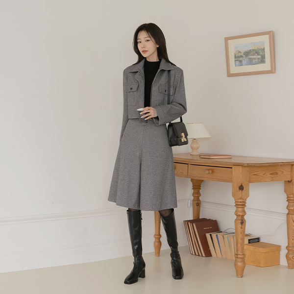 グロッシー フェイク レザー ロングブーツ ヒール