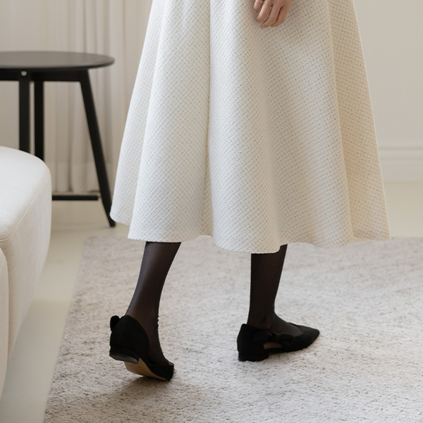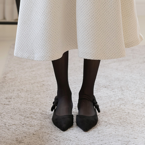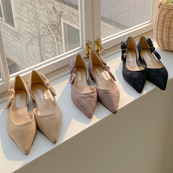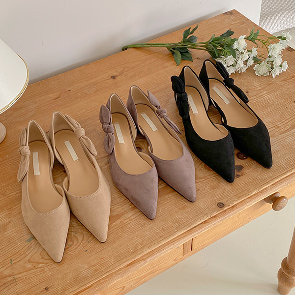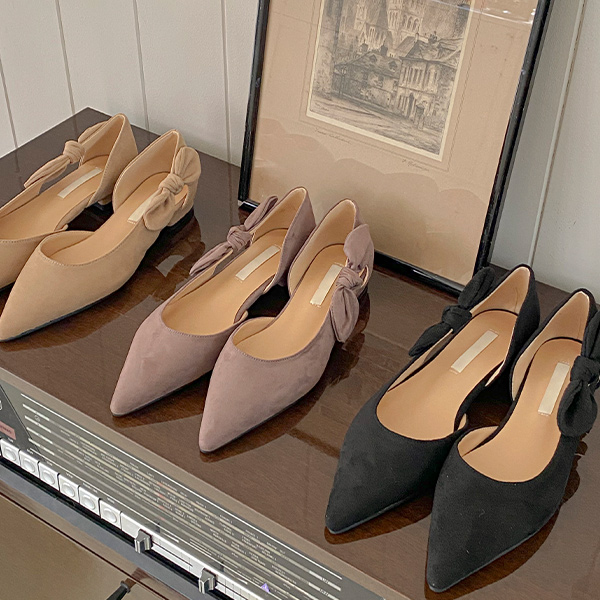 サイド リボン スティレット フラットシューズ
