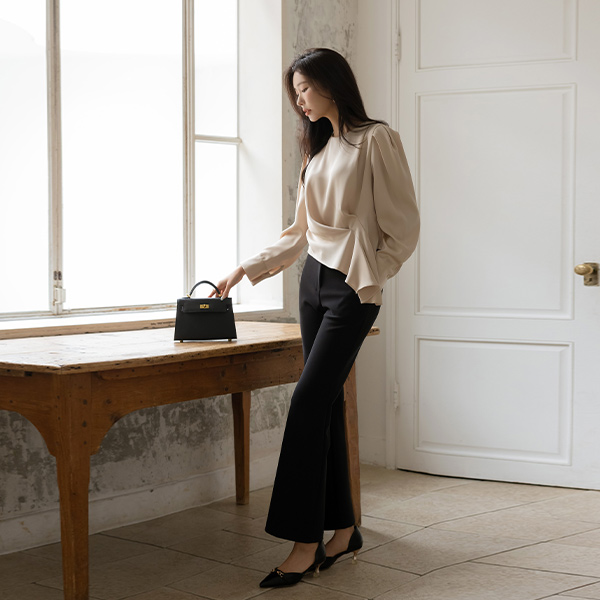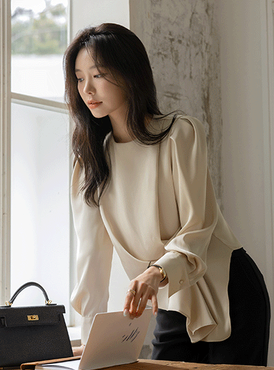 シルキー 斜線 しわ パフ ブラウス