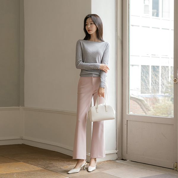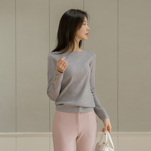 ボートネック 袖 ゴールド ボタン ニット