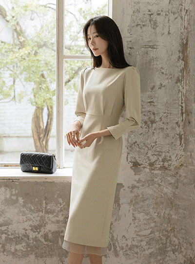 シフォン 配色 Hライン ワンピース