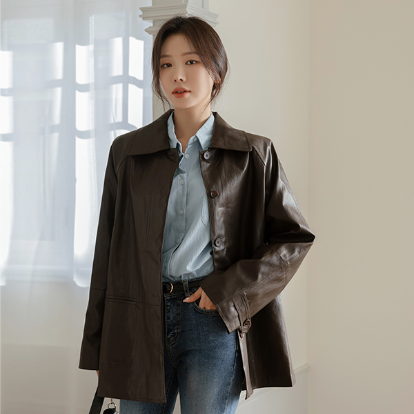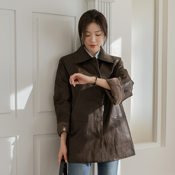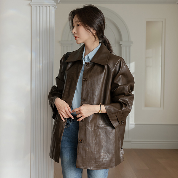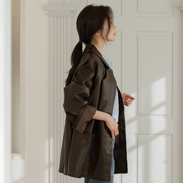 모먼트 여유핏 カラー レザー ジャケット