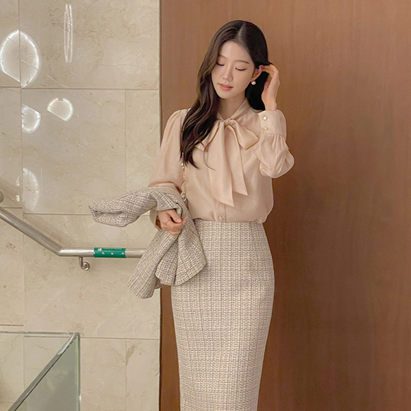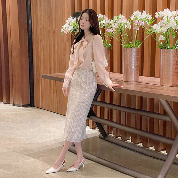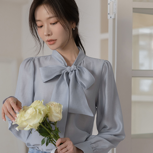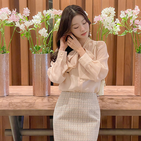 シルキー ドレッシー タイネック ブラウス