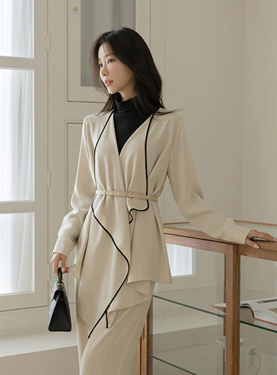エレガンス 配色 ラッフル ソフト Set-up ジャケット(+ベルト)