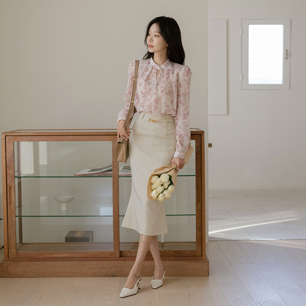 桜花 ソフト シフォン パフ ブラウス