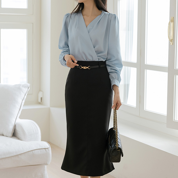 グロッシー ラップ スタイル タイネック ブラウス