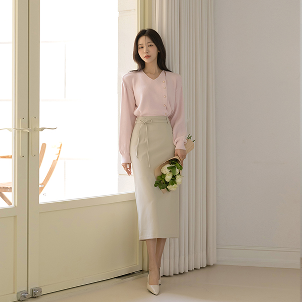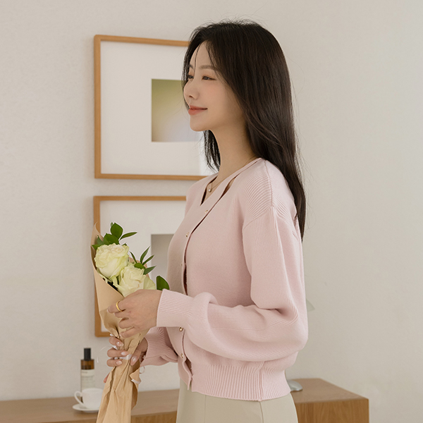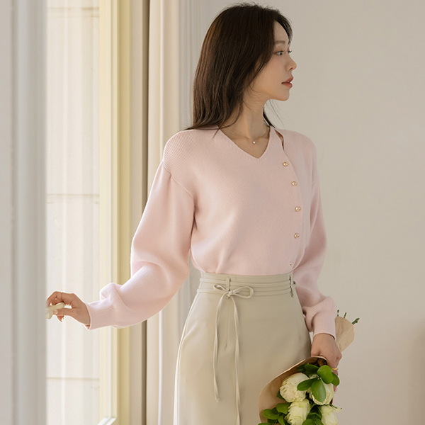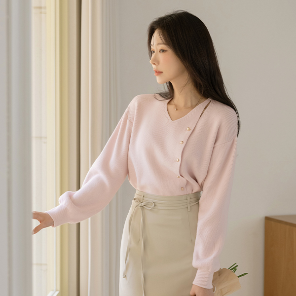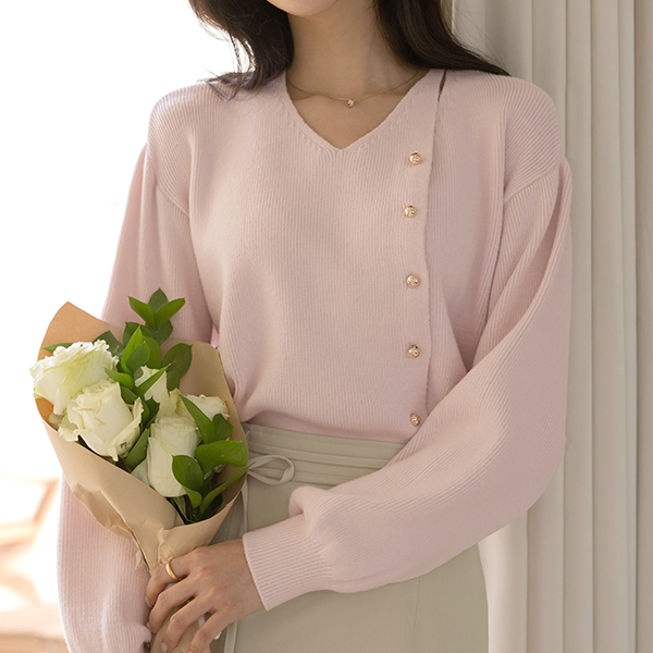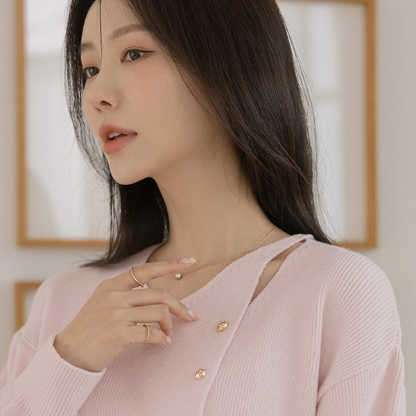 こんごう ほっそりした 切開ネック ゴールド ボタン ニット