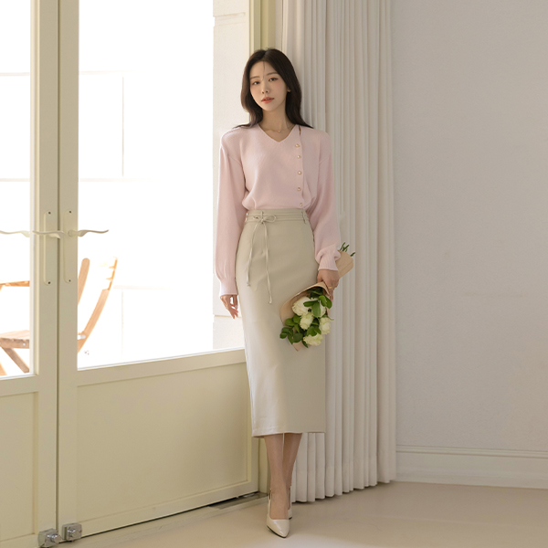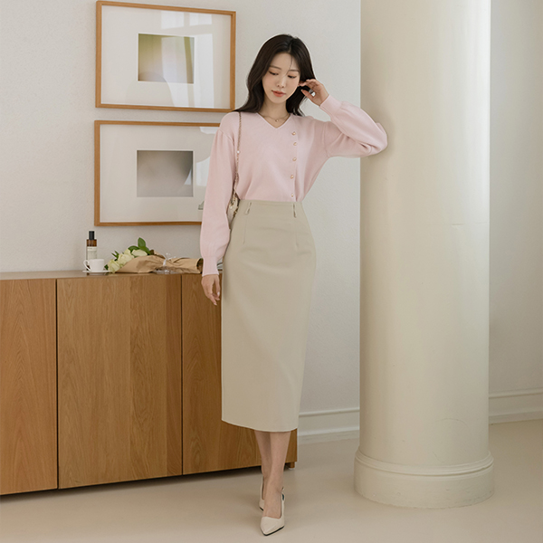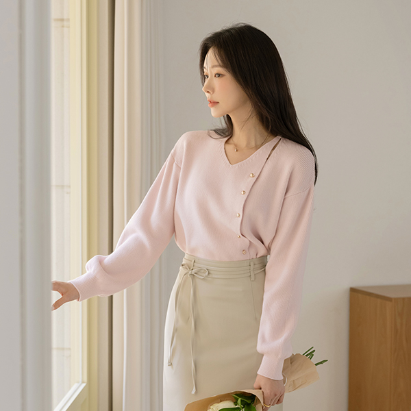 こんごう ほっそりした 切開ネック ゴールド ボタン ニット