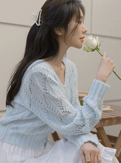 ラブリー パンチング ウール ブイネック カーディガン