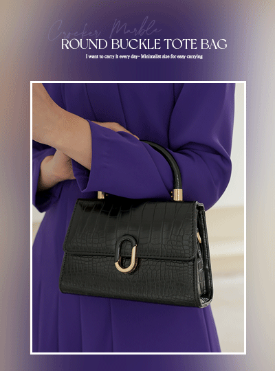 エンボスレザー マーブル 配色 ラウンド バックル トートバッグ