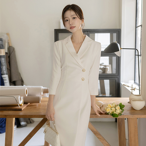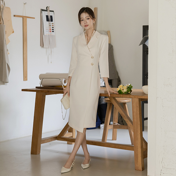 クラシック カラーネック アンバランス Hライン ワンピース