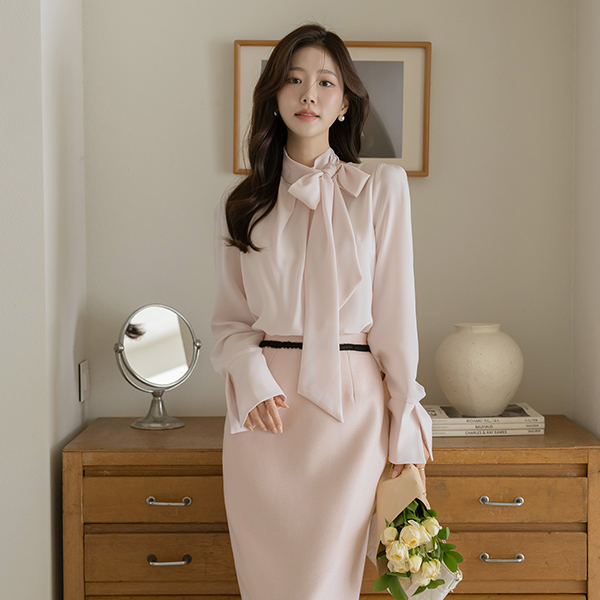 シルキー パステル タイネック ブラウス
