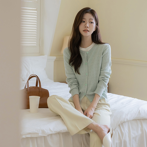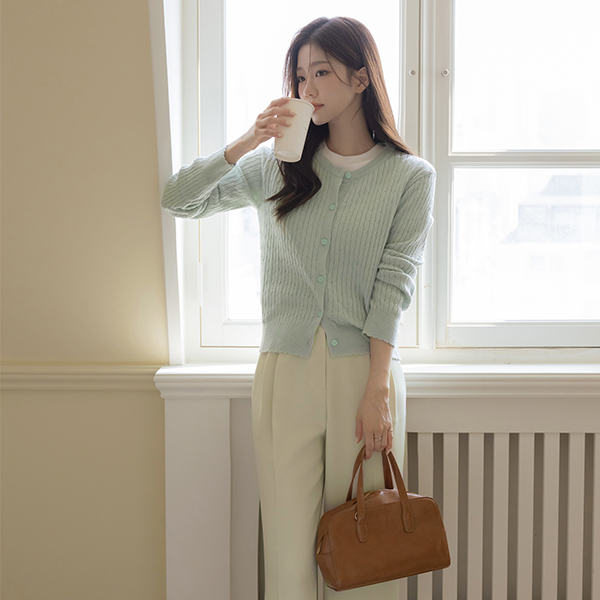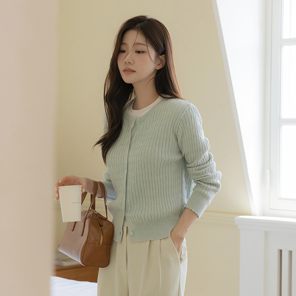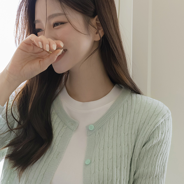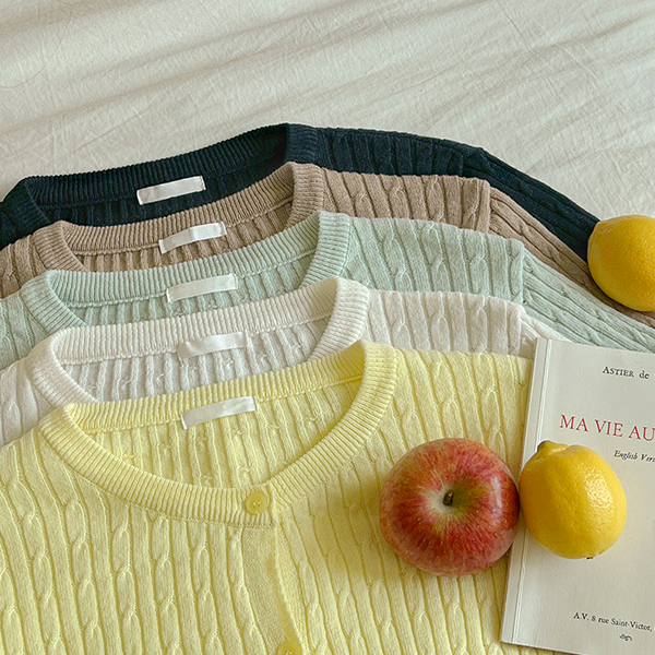 Macaron ケーブル コットン ラウンドネック カーディガン