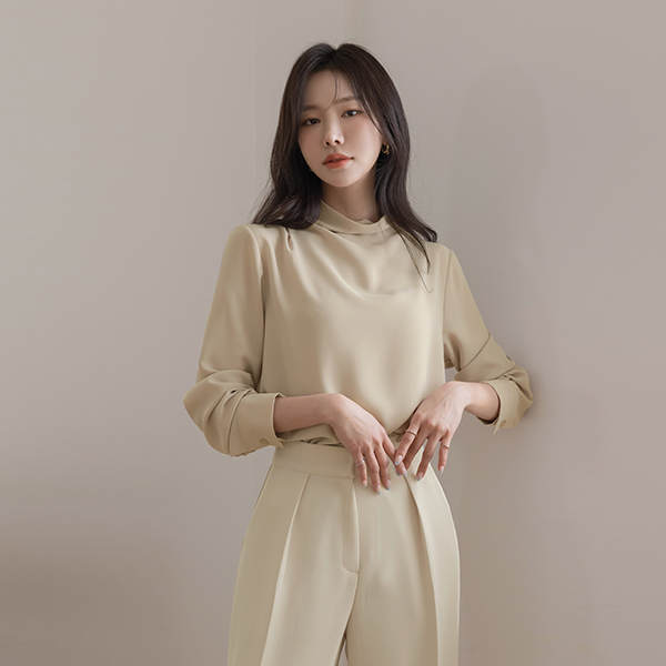 [O:neul] クリーミー ハーフネック エレガンス キャップップ ブラウス(長袖)