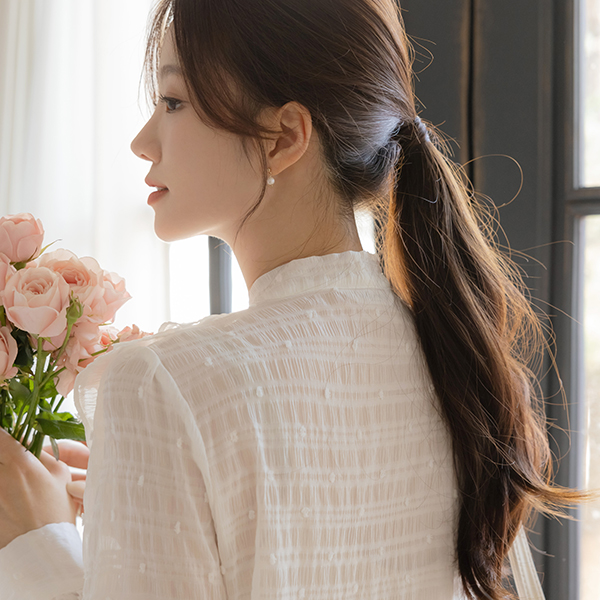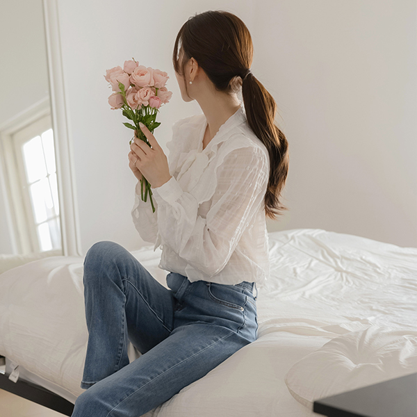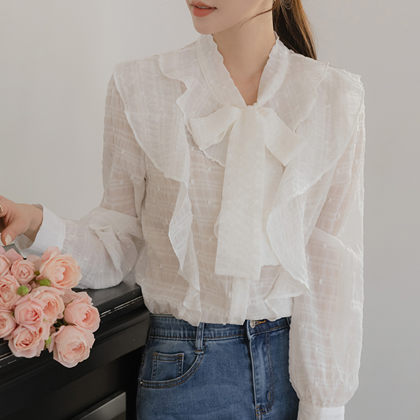 ラブリー ポップコーン ラッフル タイネック ブラウス