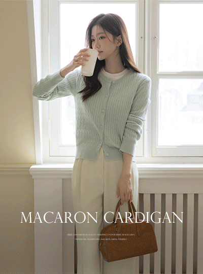 Macaron ケーブル コットン ラウンドネック カーディガン