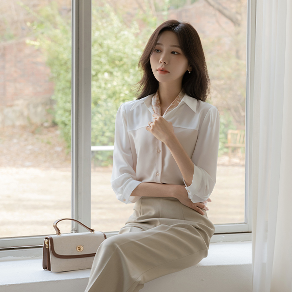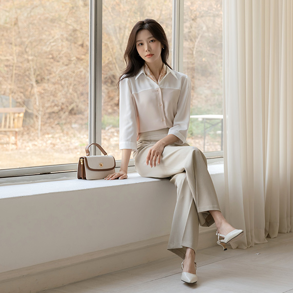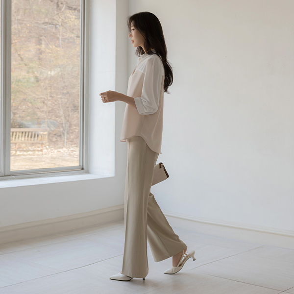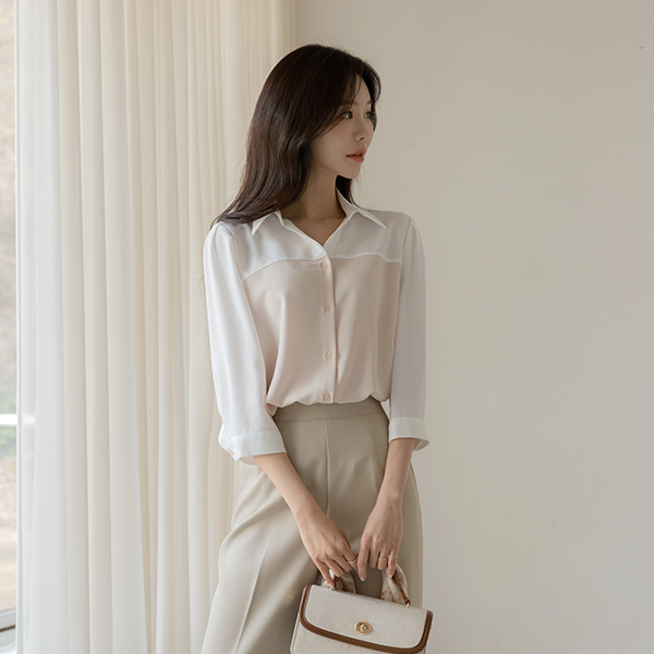 니즈 配色 レイヤード 7分袖 ブラウス