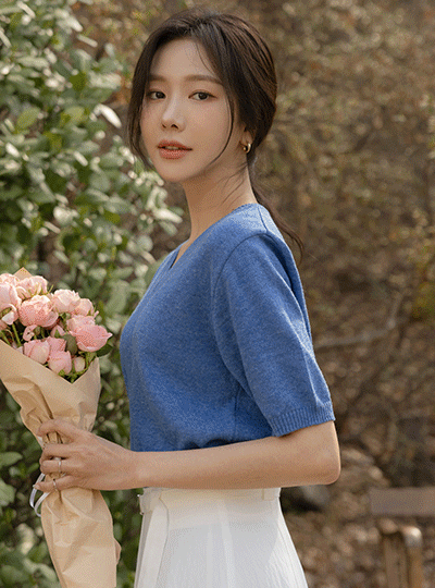 Every Day カシミア Vネック 半そで ニット