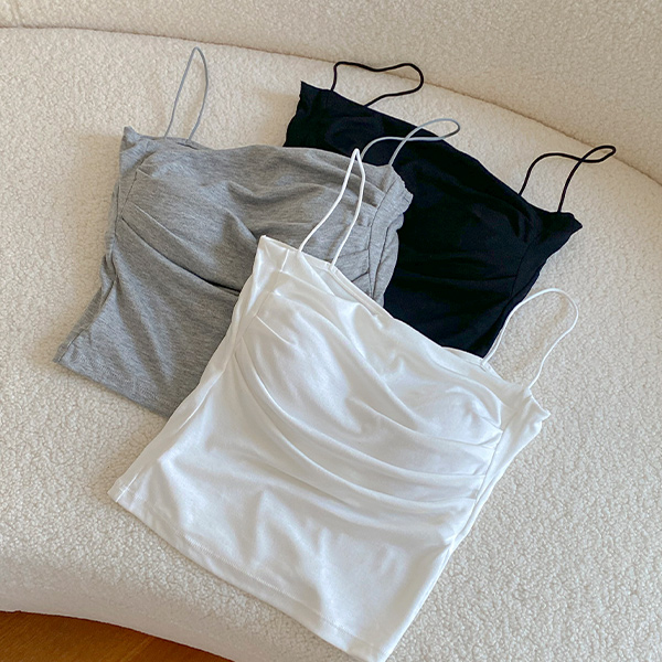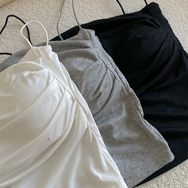 シャーリング 일자넥 キャップ 내장 袖なし