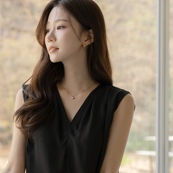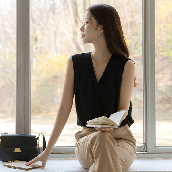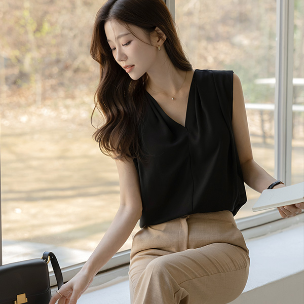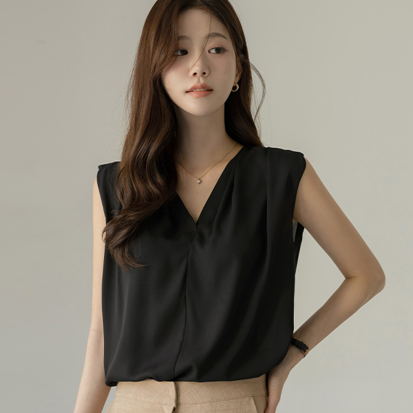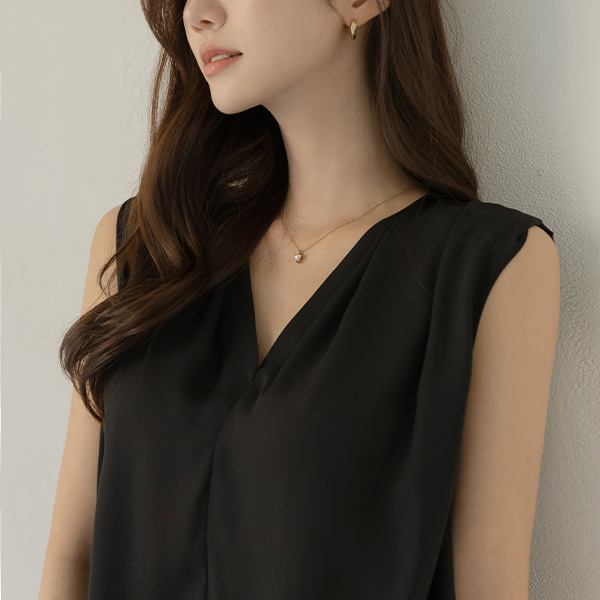 보니 ピンタック Vネック ソフト 袖なし ブラウス