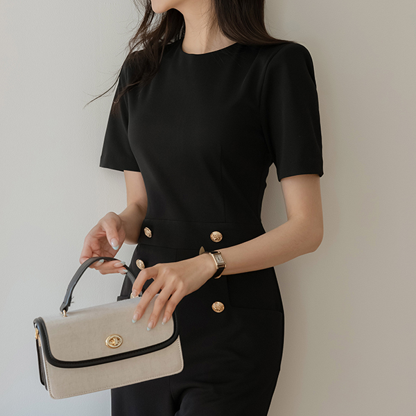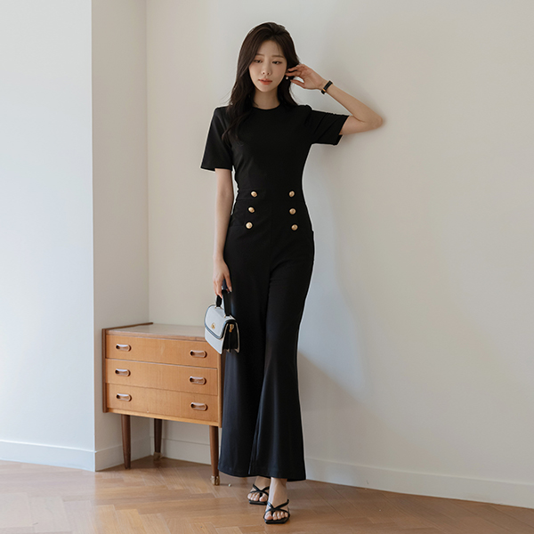 ダブル ゴールド 長い脚 半そで ジャンプスーツ