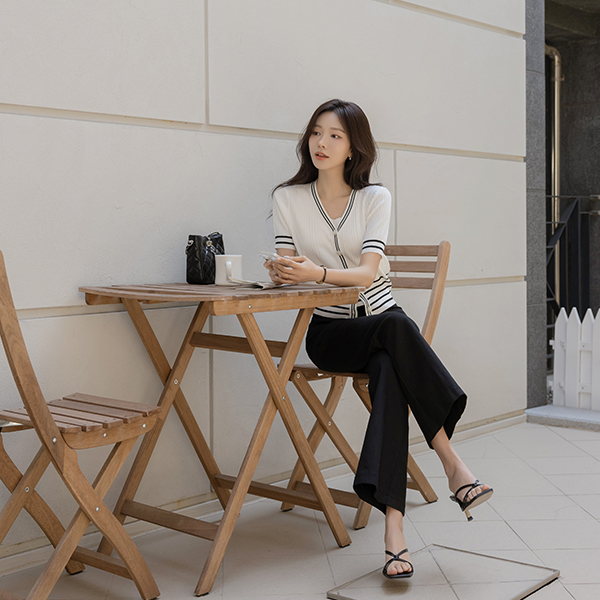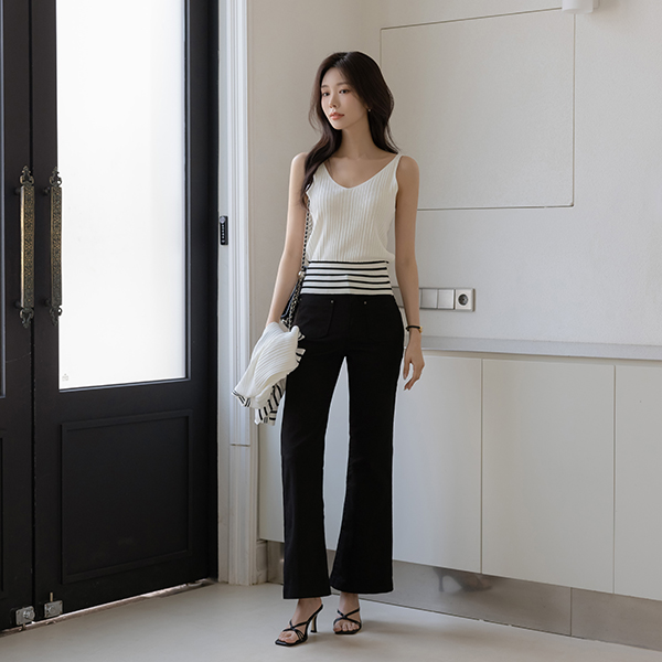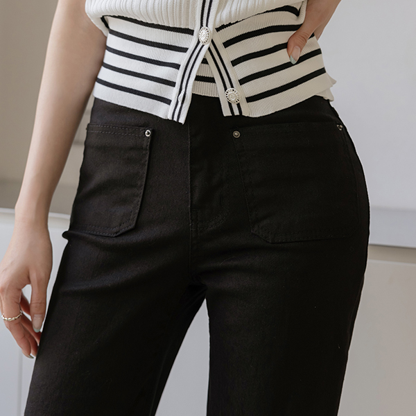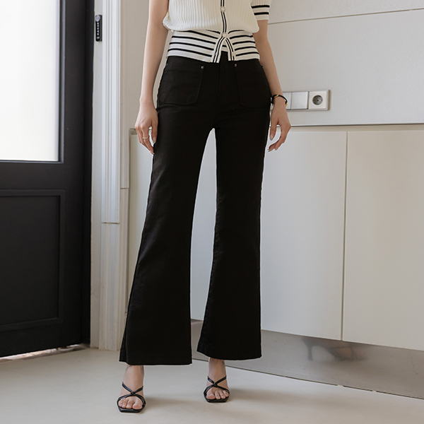 플로 ストレート しわ ブーツカット コットン パンツ