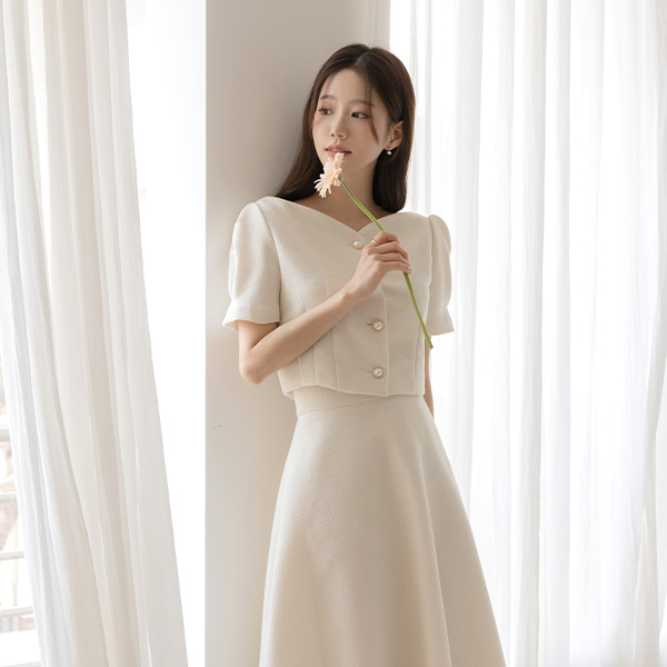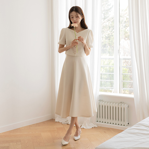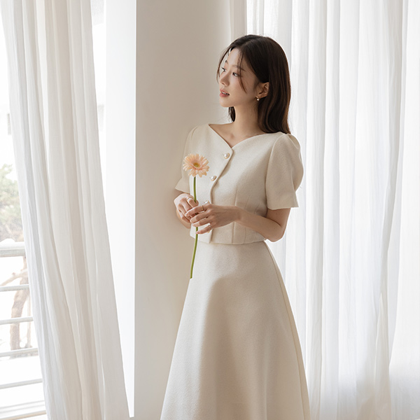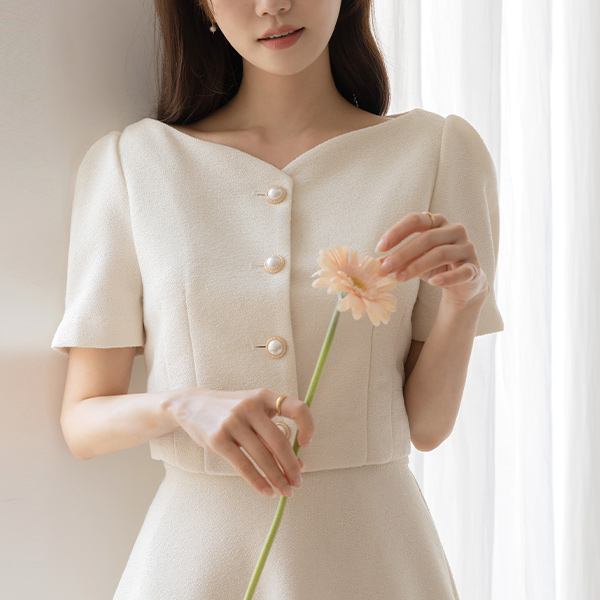 멜로 パフ袖 ツイード クロップド Set-up ジャケット
