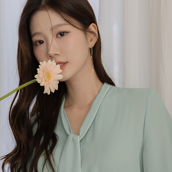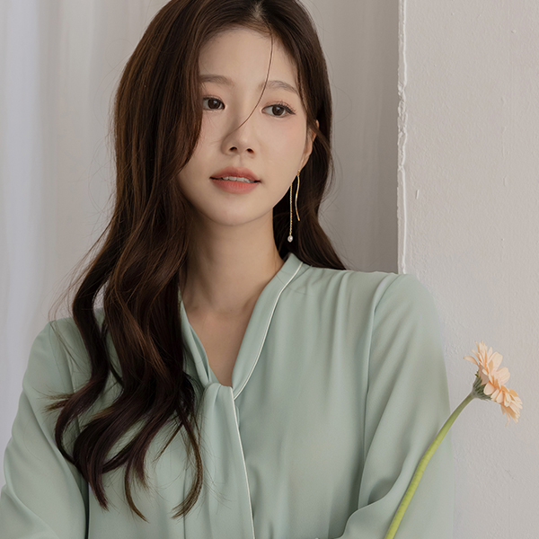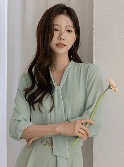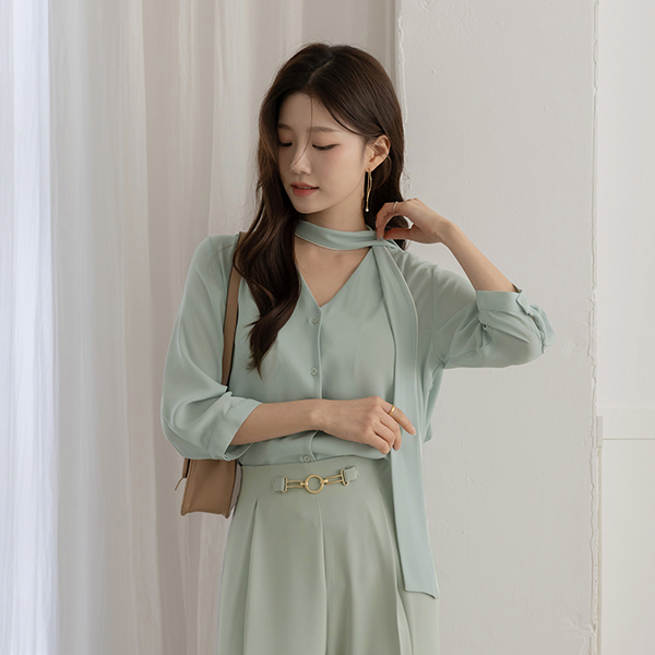 配色 裏地 ソフト タイネック ブラウス