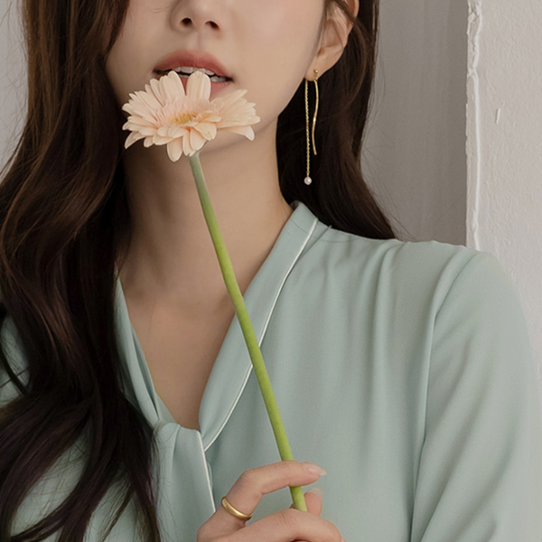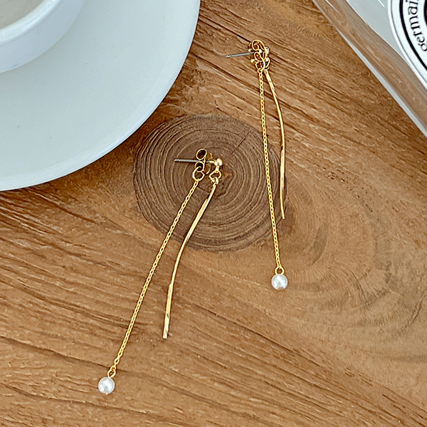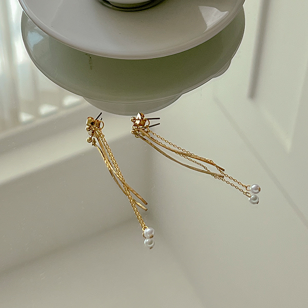ゴールド レイヤード ドロップ 真珠 イヤリング