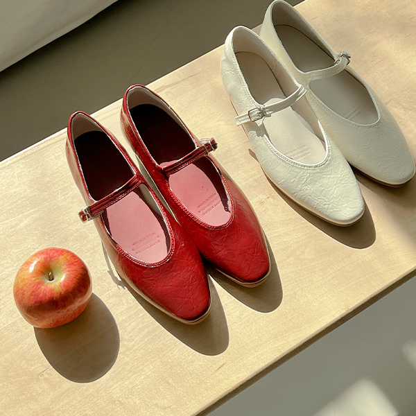 ピュア カラー グロッシー ラウンド フラットシューズ