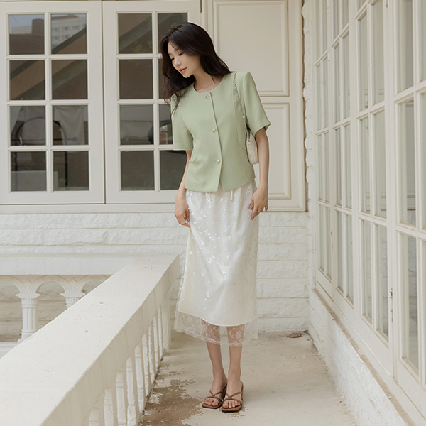 ラウンドネック サマー ツイード ジャケット