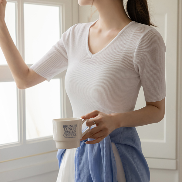 plain 弾力 コール天 ブイネック ニット