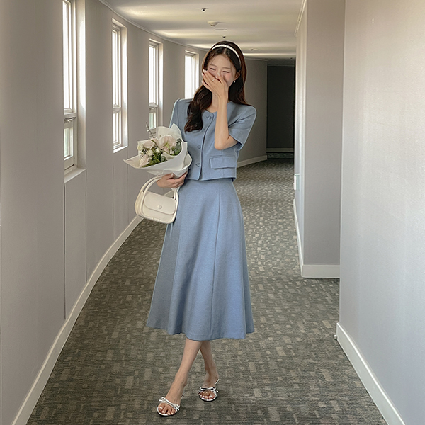 ツイード リネン Aライン Set-up スカート