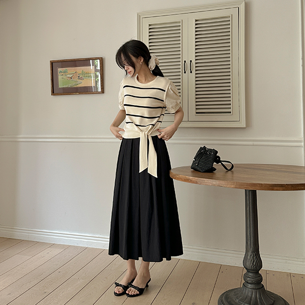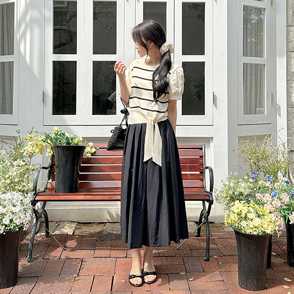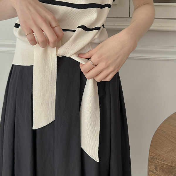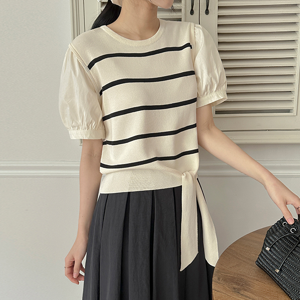 しめくくり ポイント ストライプ 配色 袖 ニット