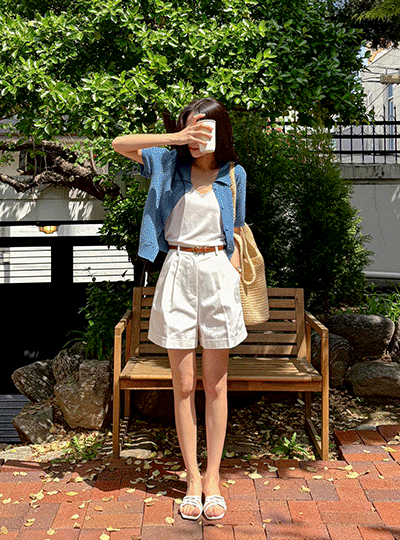 ピンタック コットン ハーフ パンツ