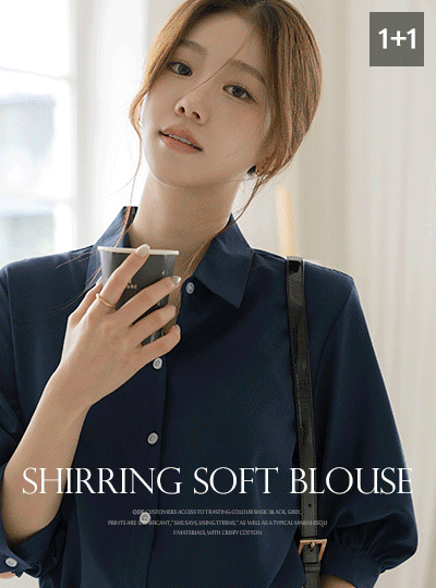 (1+1할인) シャーリング 7分袖 ソフト 弾力 ブラウス