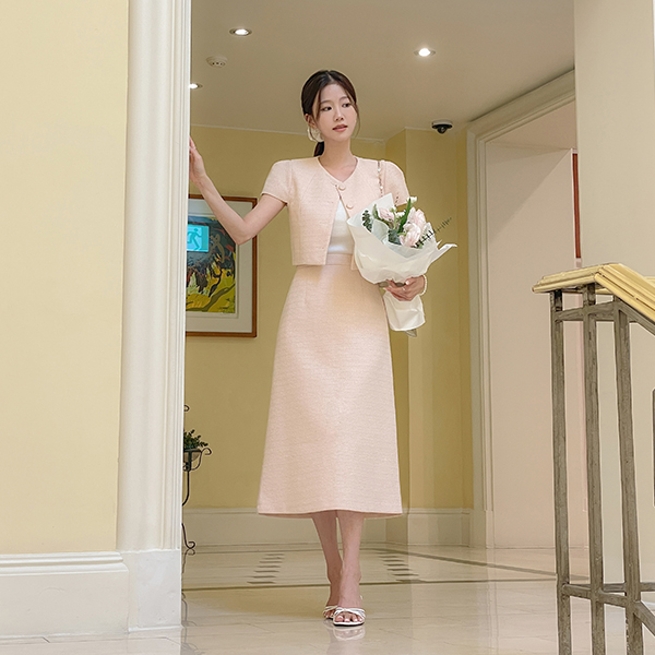 チェロ ツイード パフ クロップド Set-up ジャケット