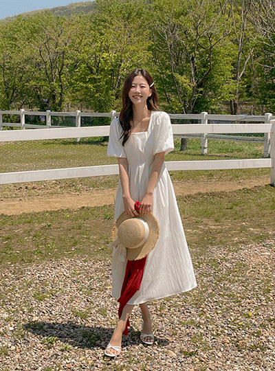 フェミニン しょうか レイス 後面バンド 袖なし ロング ワンピース