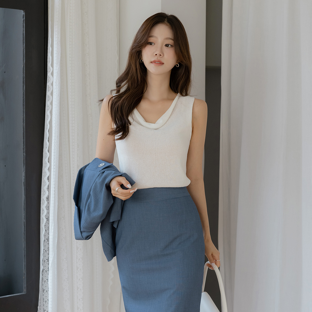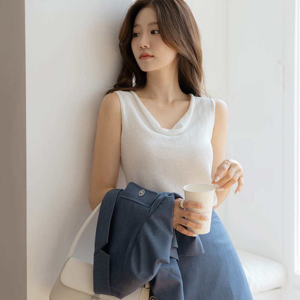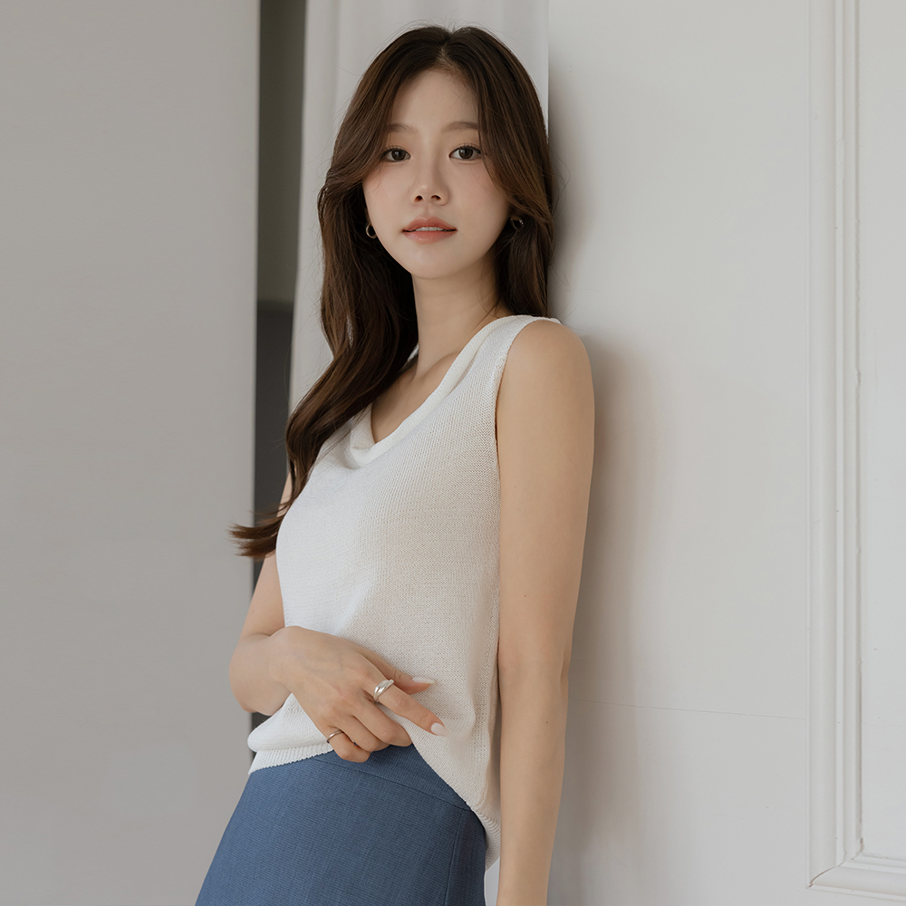 サマー パステル カウルネック 袖なし ニット