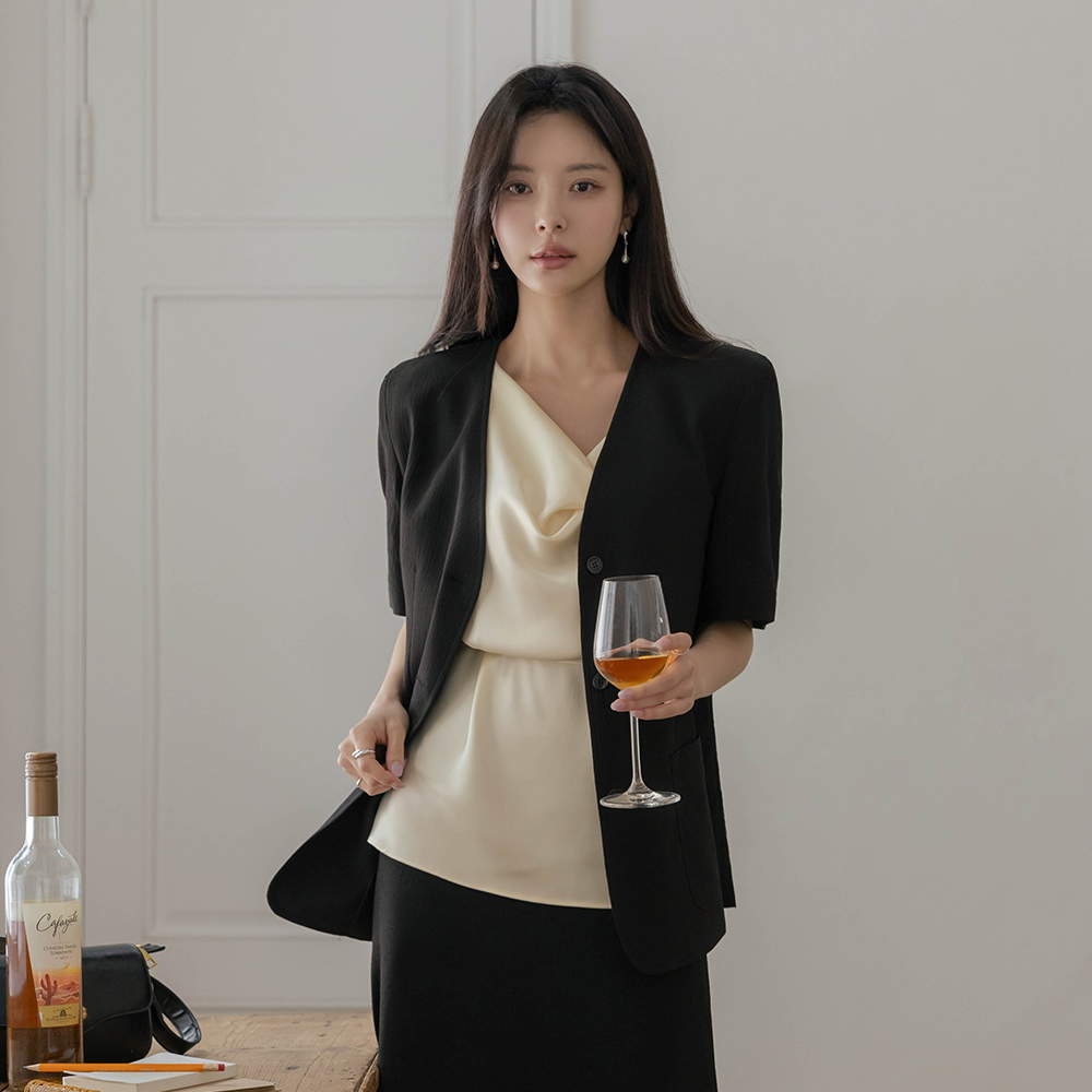 ラグジュアリー カウルネック サテン ブラウス(+ベルト)