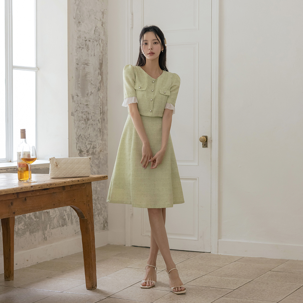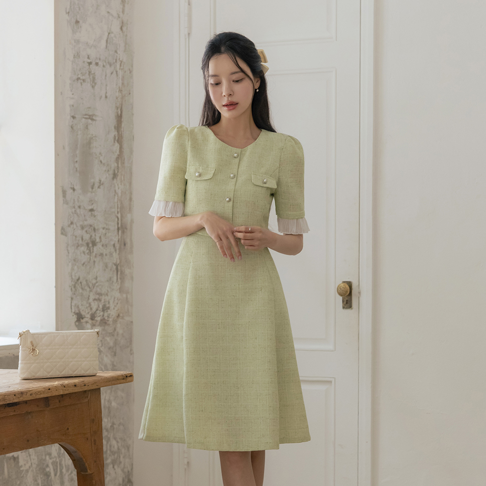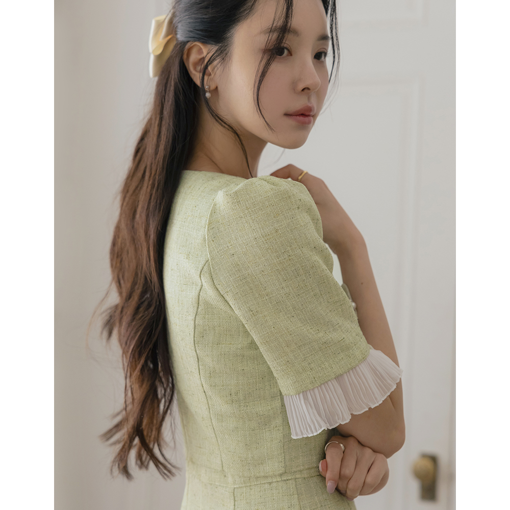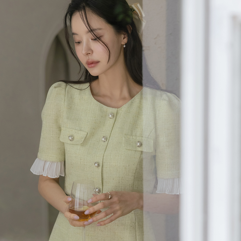 フリル 配色 ツーピース スタイル ツイード ワンピース