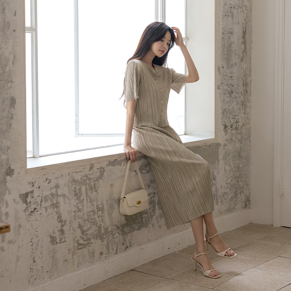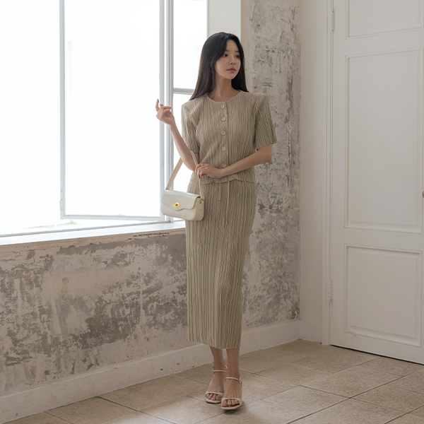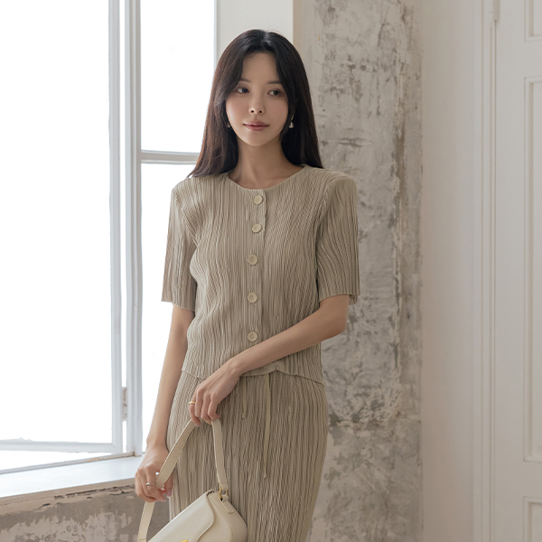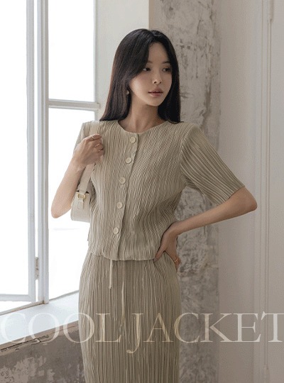 スカレット ラウンドネック プリーツ クール Set-up ジャケット