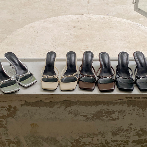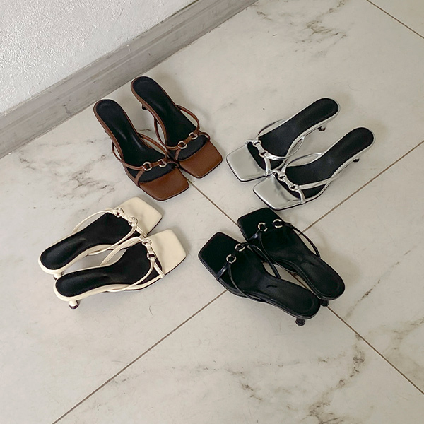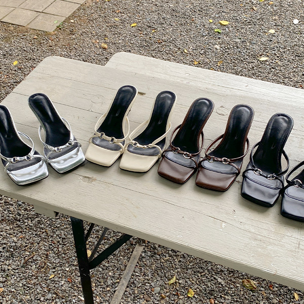 チェーン バックル 오픈토 サンダルヒール