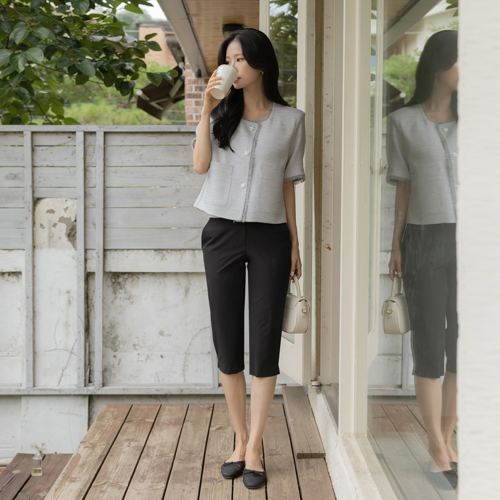 タッセル ツイード 後面バンド 半そで ジャケット