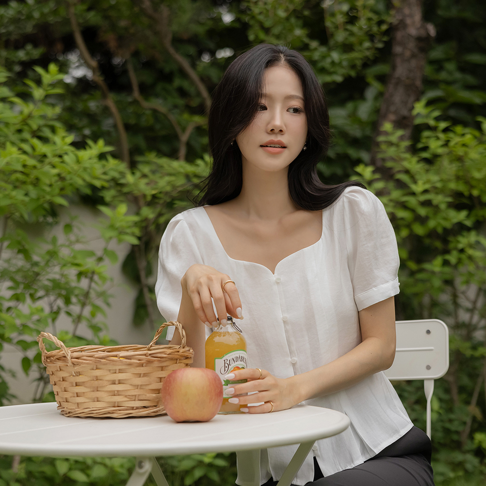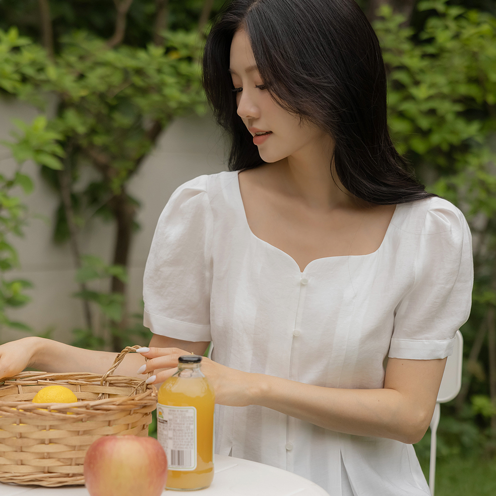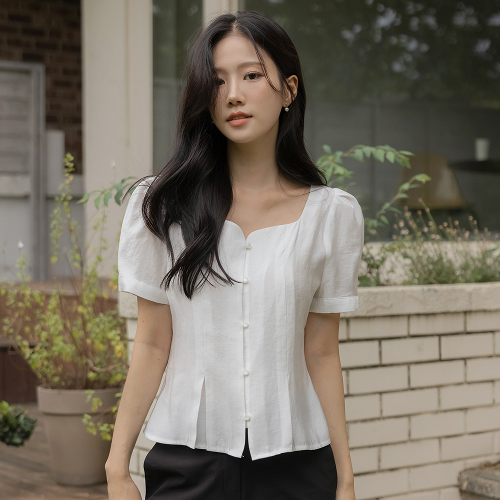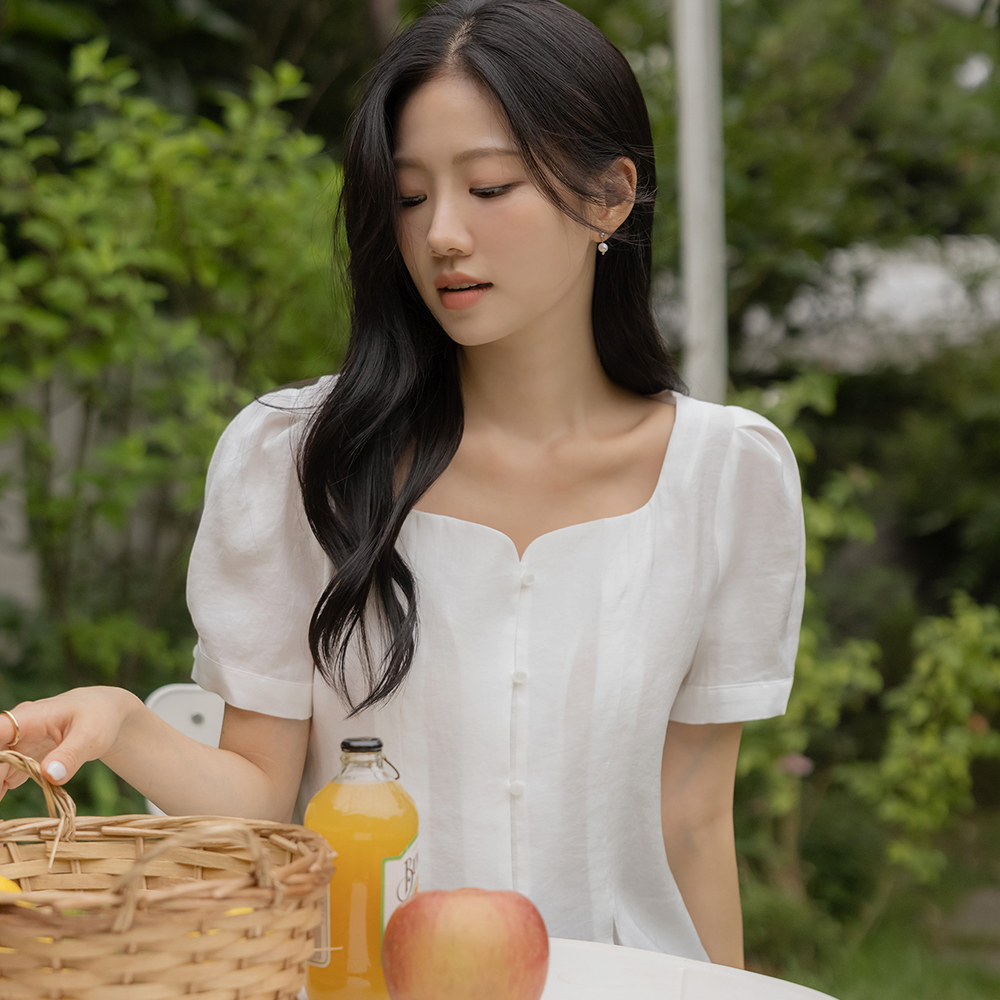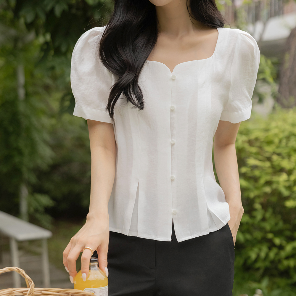 ミニマル ハート スクエアネック パフ ブラウス