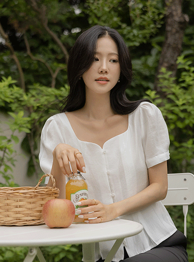 ミニマル ハート スクエアネック パフ ブラウス