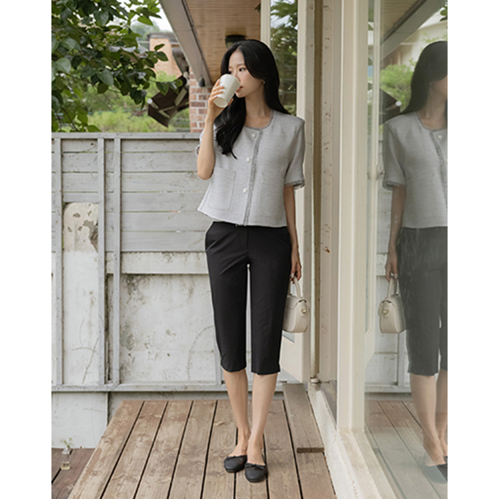 さらさら 弾力 裾上 スリット クロップド 카프리 パンツ