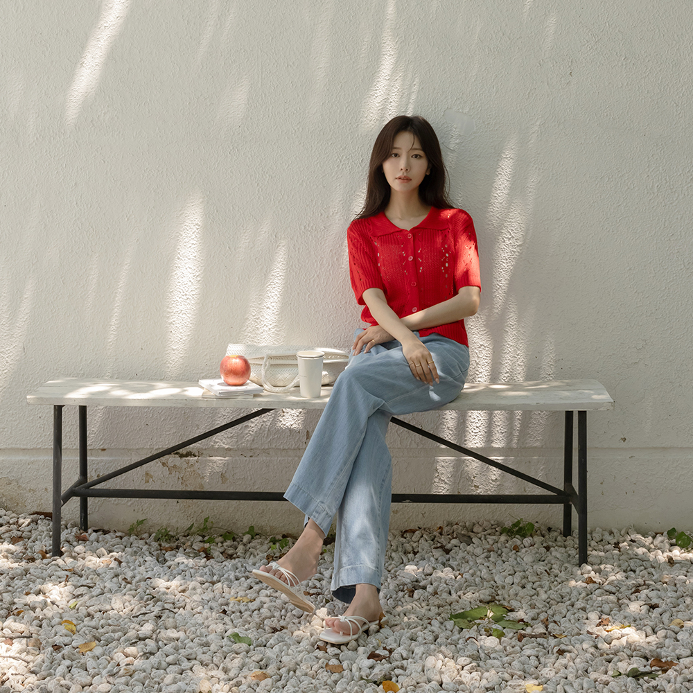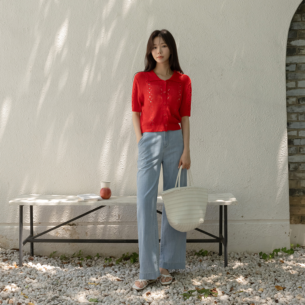 サマー 쿨이지 後面バンド ワイド デニム パンツ